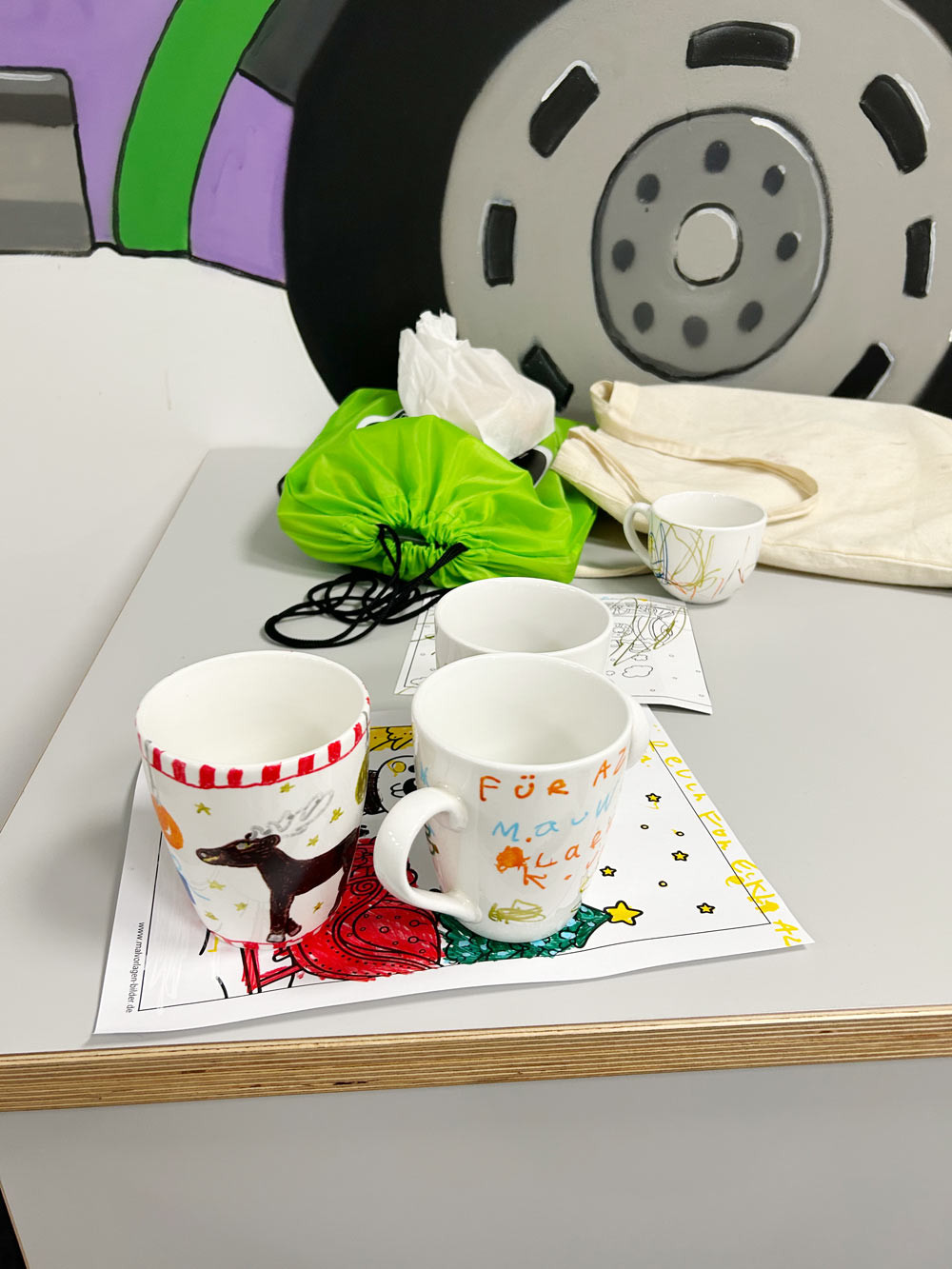Porzellanmalerei wurde angeboten und viele Besucher nutzen die Gelegenheit um bei adventlicher Stimmung in gemütlicher Runde Weihnachtstassen zu gestalten. Der Basteltisch war gut besucht und wunderschöne Unikate sind entstanden. Desweiteren bestand die Möglichkeit zu Backen und aus Quark-Öl-Teig entstanden köstliche Tannenbäume, Sterne, Lebkuchenfiguren und Rentiere. Natürlich fehlte es nicht an süßer Verzierung und die Plätzchen wurden mit Zuckerguss und leckeren Naschereien dekoriert.